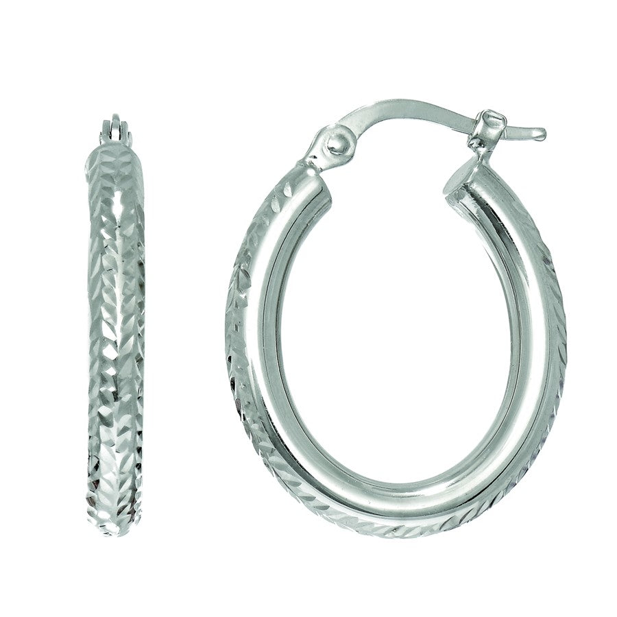 14K Gold Hinged Oval Diamond Cut Hoop Earring