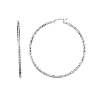 Silver 50mm Diamond Cut and Twist Hoop Earring