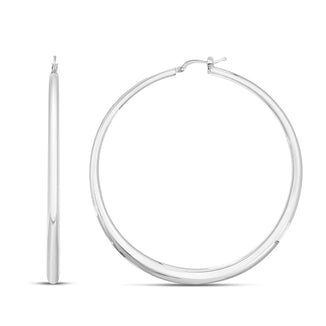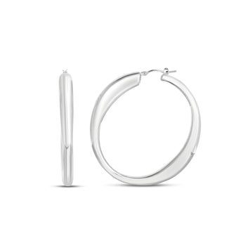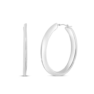 Silver Beveled Oval Hoops