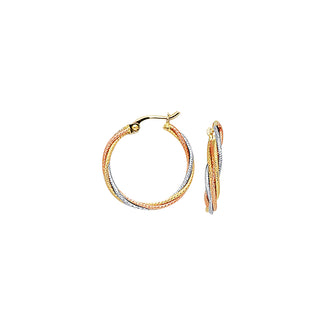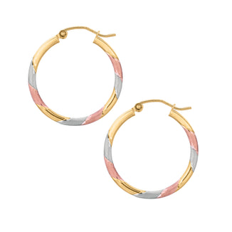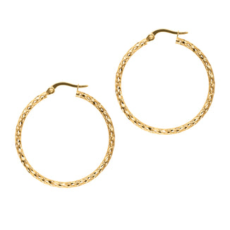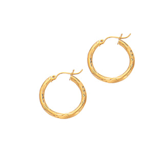 10K Gold Yellow Exterior, White Interior Diamond Cut Hoop Earring
