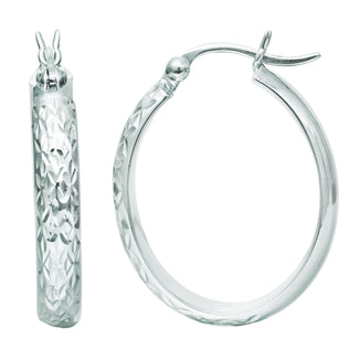 10K Gold 2x15mm Diamond Cut Hoop Earring
