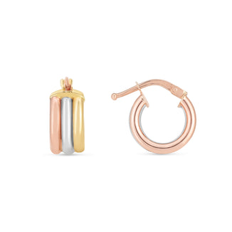 14K Gold Reversible Polished & Linear Diamond Cut Huggie Earring