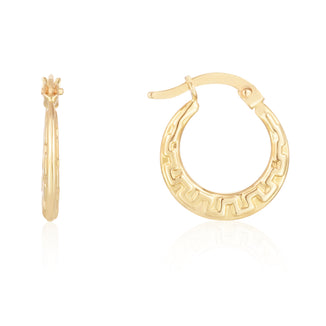 14K Gold Greek Key Hoops