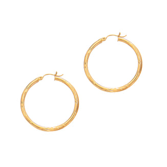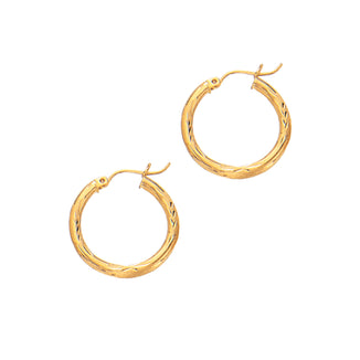 14K Yellow Gold 3mm Diamond Cut & Polished Design Hoop Earring