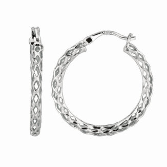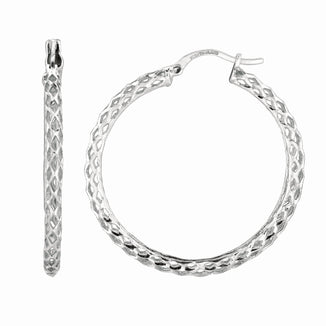 Silver 20mm Diamond Cut Twist Hoop Earring