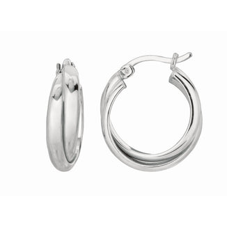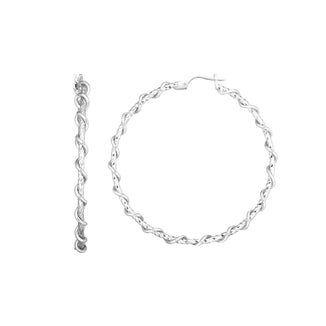 Silver Diamond Cut & Polished Twist Puffed Hoop Earring