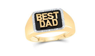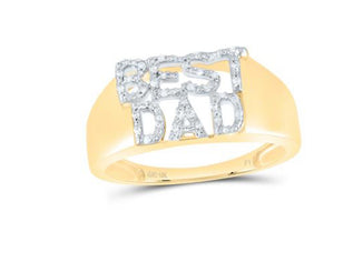 10K YELLOW GOLD ROUND DIAMOND BEST DAD BAND RING 1/10 CTTW