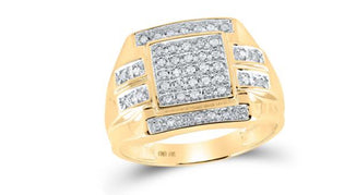 10K YELLOW GOLD ROUND DIAMOND SQUARE CLUSTER RING 1/3 CTTW