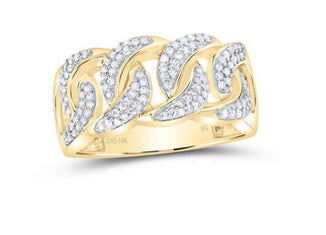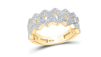 10K YELLOW GOLD ROUND DIAMOND CUBAN LINK BAND RING 3/4 CTTW