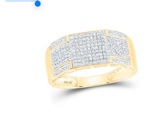 10K YELLOW GOLD ROUND DIAMOND DAD CIRCLE RING 1/12 CTTW