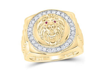10K YELLOW GOLD ROUND DIAMOND LION FACE CIRCLE RING 1/2 CTTW