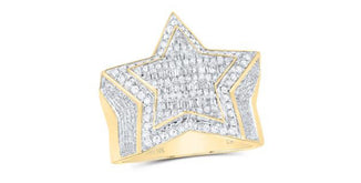 10K YELLOW GOLD BAGUETTE DIAMOND STATEMENT STAR RING 1-1/4 CTTW