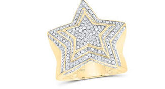 10K YELLOW GOLD ROUND DIAMOND STAR RING 7/8 CTTW