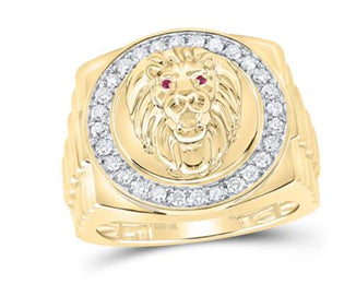 10K YELLOW GOLD ROUND DIAMOND LION FACE CIRCLE RING 1/2 CTTW