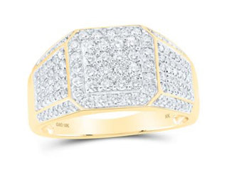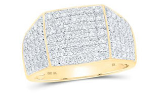 10K YELLOW GOLD ROUND DIAMOND PAVE SQUARE RING 1-1/2 CTTW