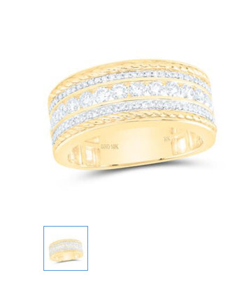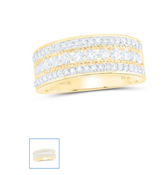 10kt Yellow Gold Mens Round Channel-set Diamond Triple Row Wedding Band Ring 1/8 Cttw