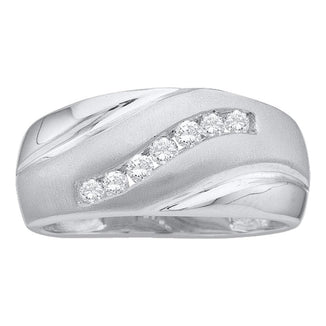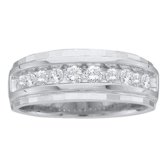 10kt White Gold Mens Round Channel-set Diamond Wedding Band Ring 1/2 Cttw