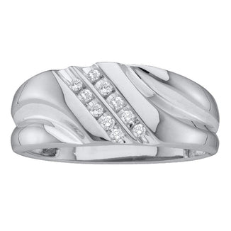 10kt White Gold Mens Round Channel-set Diamond Wedding Anniversary Band Ring 1/4 Cttw