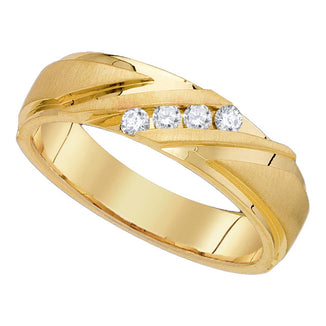 10k Yellow Gold Mens Round Diamond Channel-set Wedding Anniversary Band Ring 1/6 Cttw