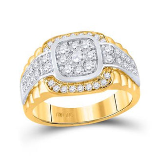 10kt Two-tone Yellow Gold Mens Round Diamond 3-Row Cluster Ring 1/2 Cttw