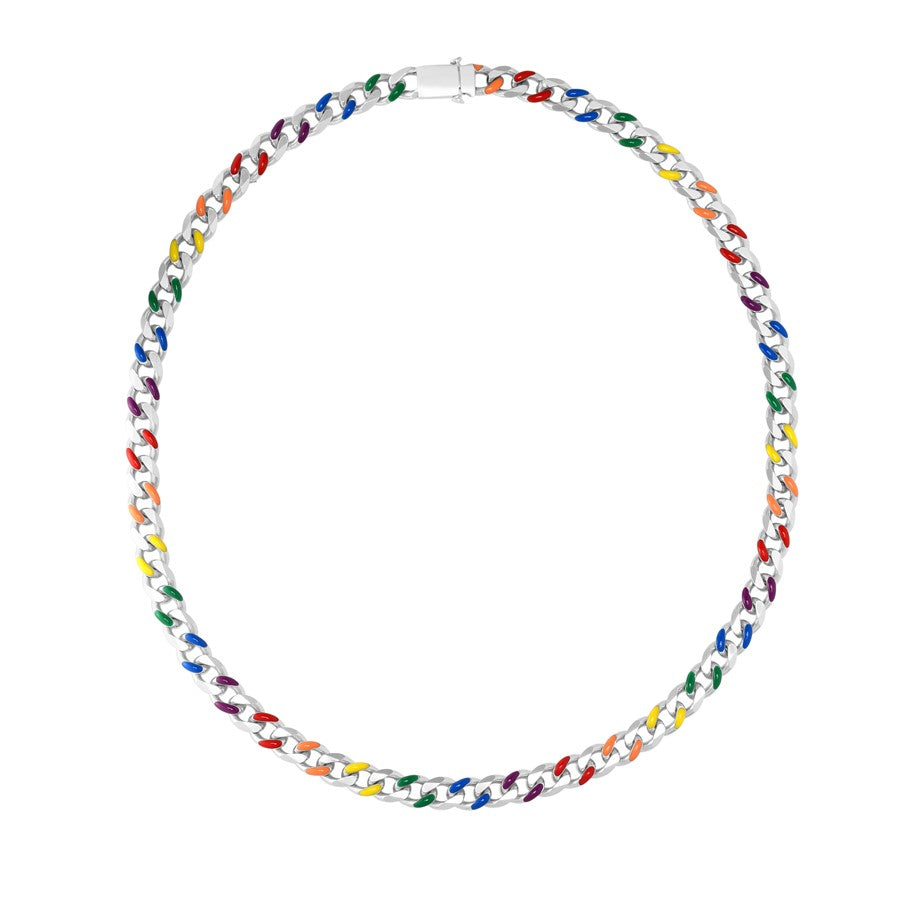 Silver 7.25" Rainbow Enamel Cuban Bracelet
