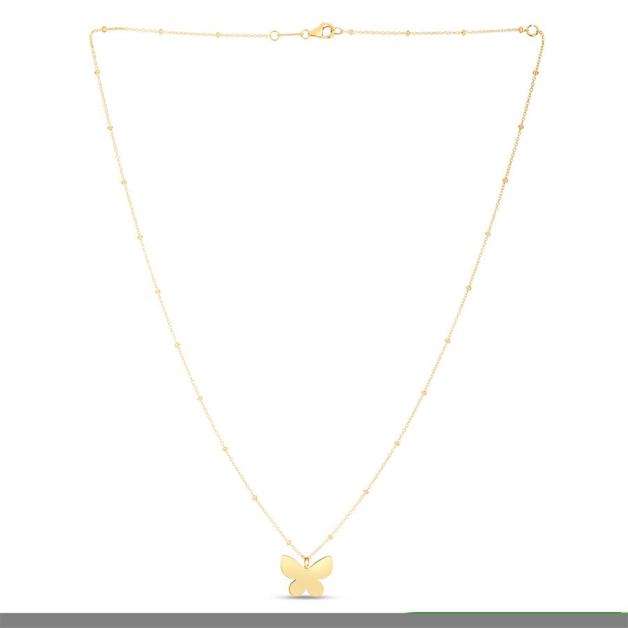 14K Yellow Gold 18" Butterfly Necklace with Lobster Clasp, including jump ring at 16"