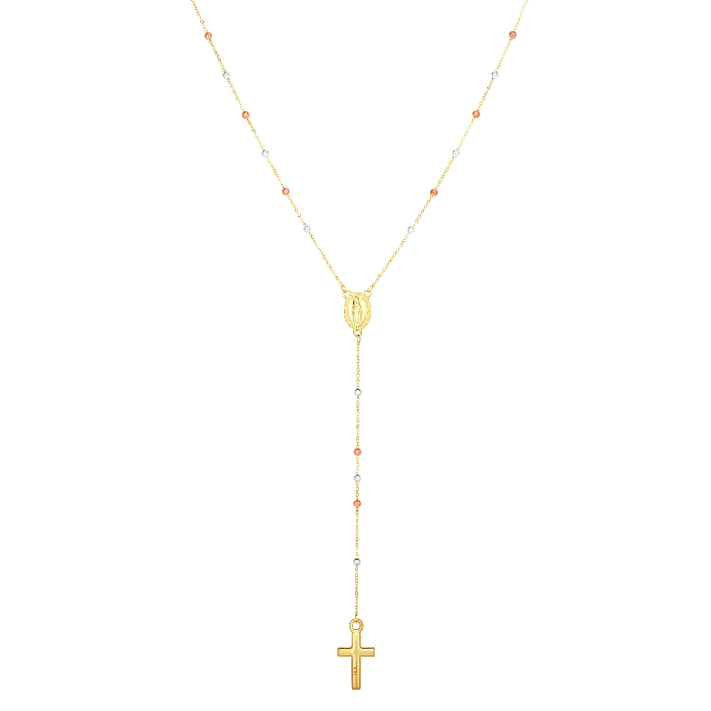 14K Tri-Colorr Gold 26" Rosary Inspired Necklace