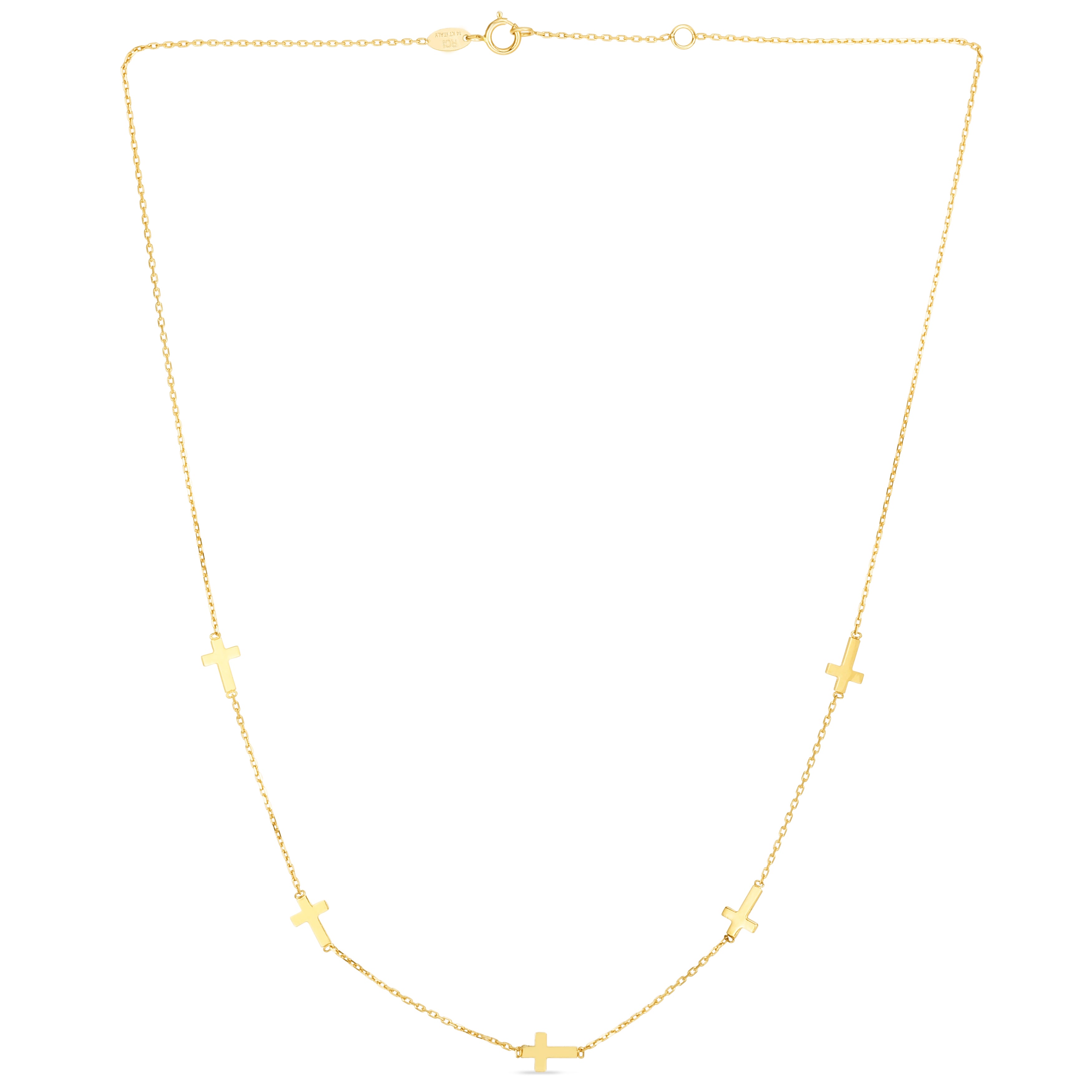 14K Yellow Gold 17" Cross Station Necklace