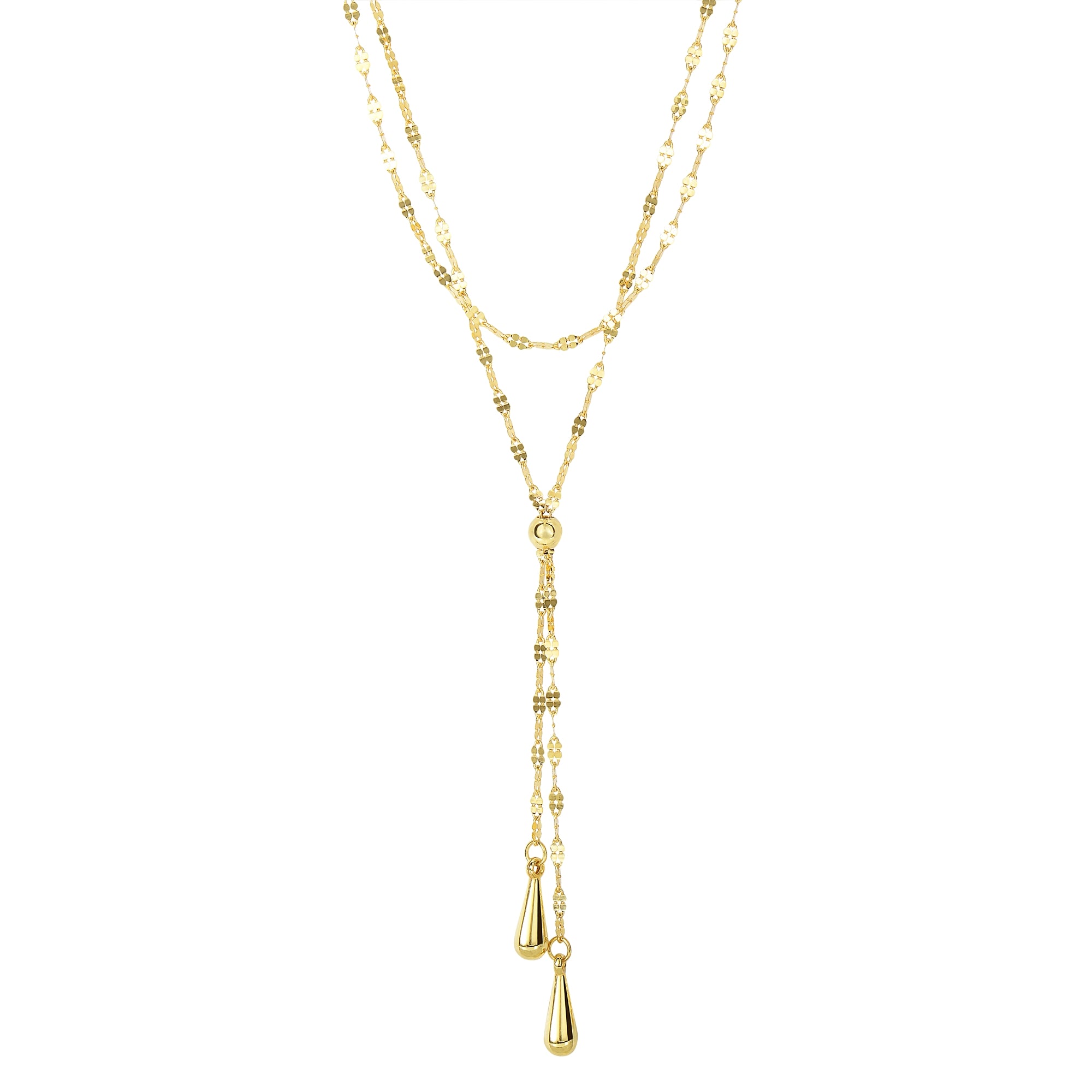 14K Yellow Gold 17" Double Tear Drop Multi-Strand Necklace