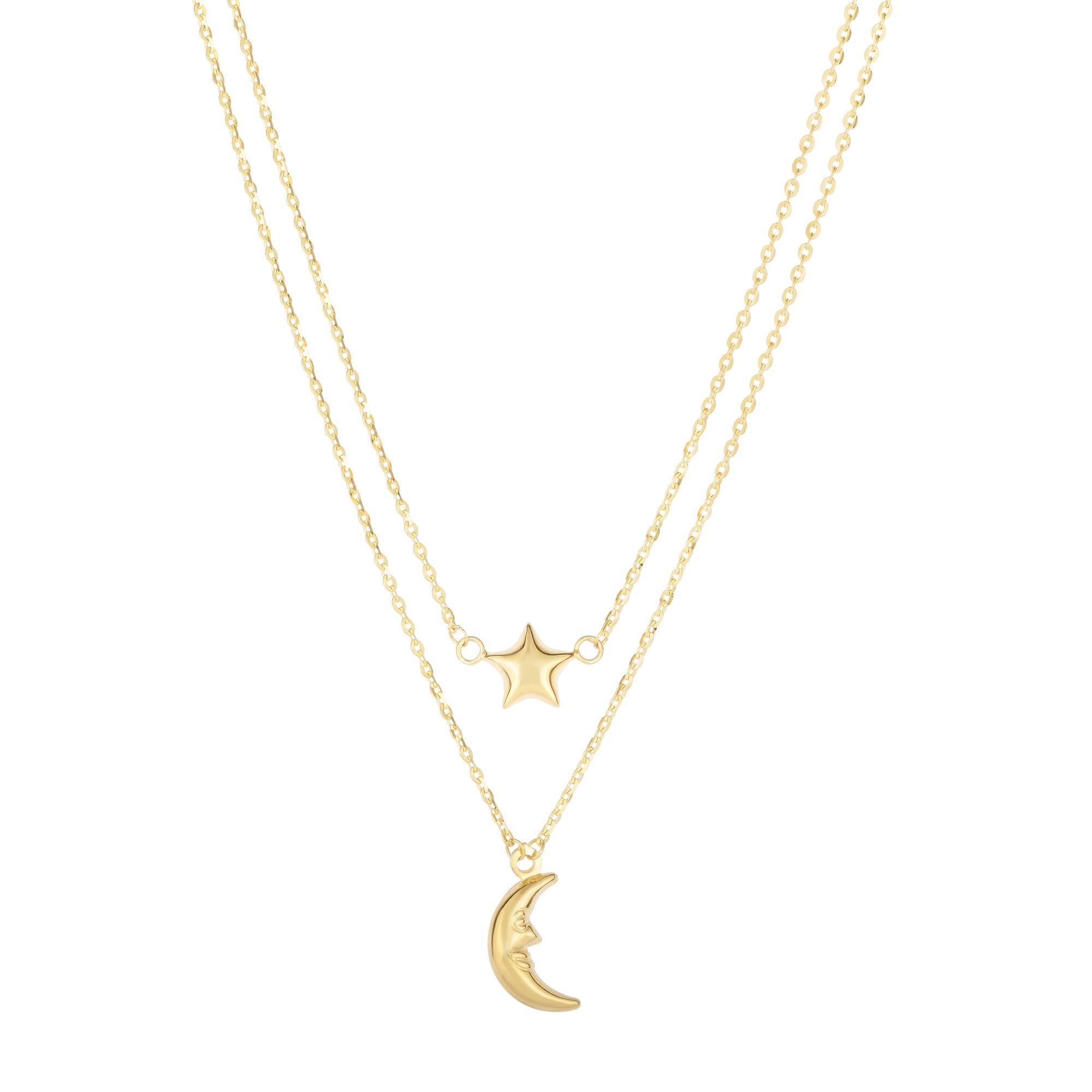 14K Gold Polished Moon & Star Multi-Strand Necklace