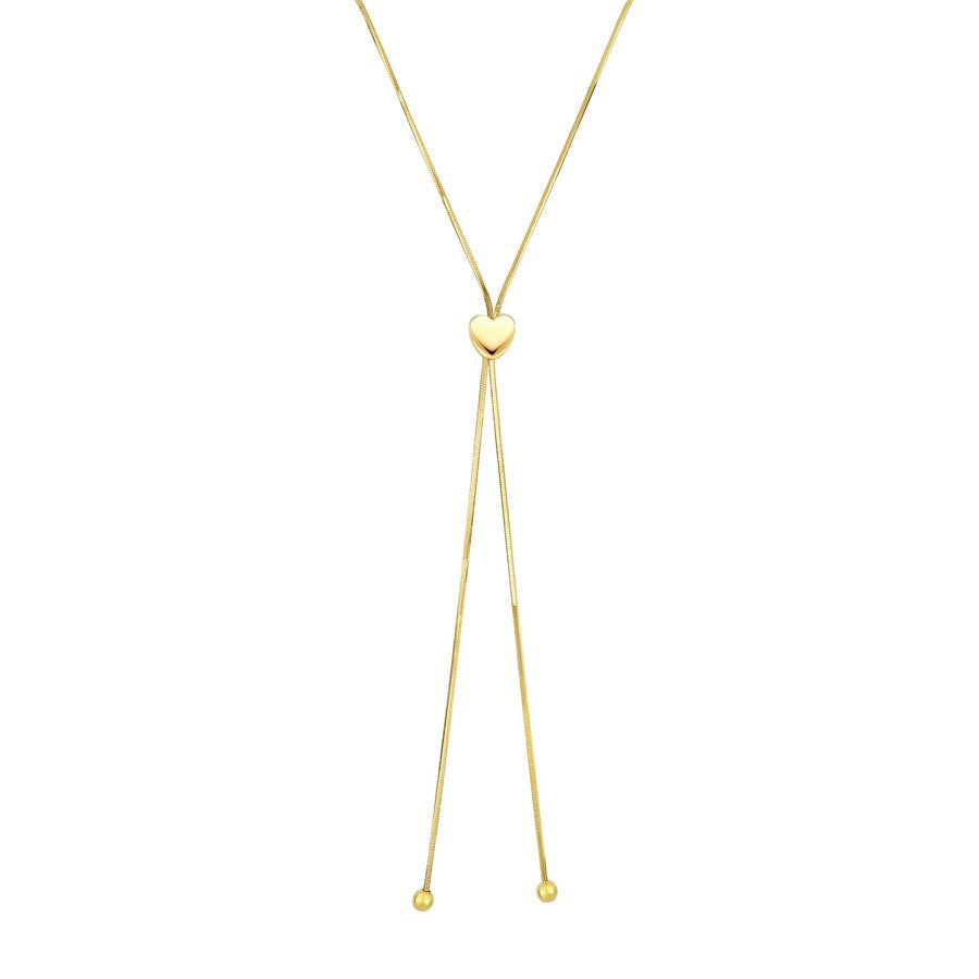 14K Yellow Gold 24" Snake Chain Lariat with Heart Slide Friendship Necklace