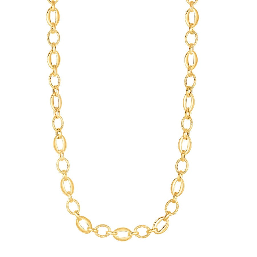 14K Gold Polished Oval & Diamond Cut Link Chain