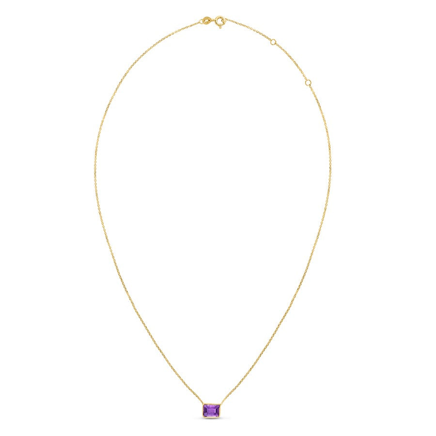 14K Yellow Gold 18" Emerald Cut Amethyst Necklace