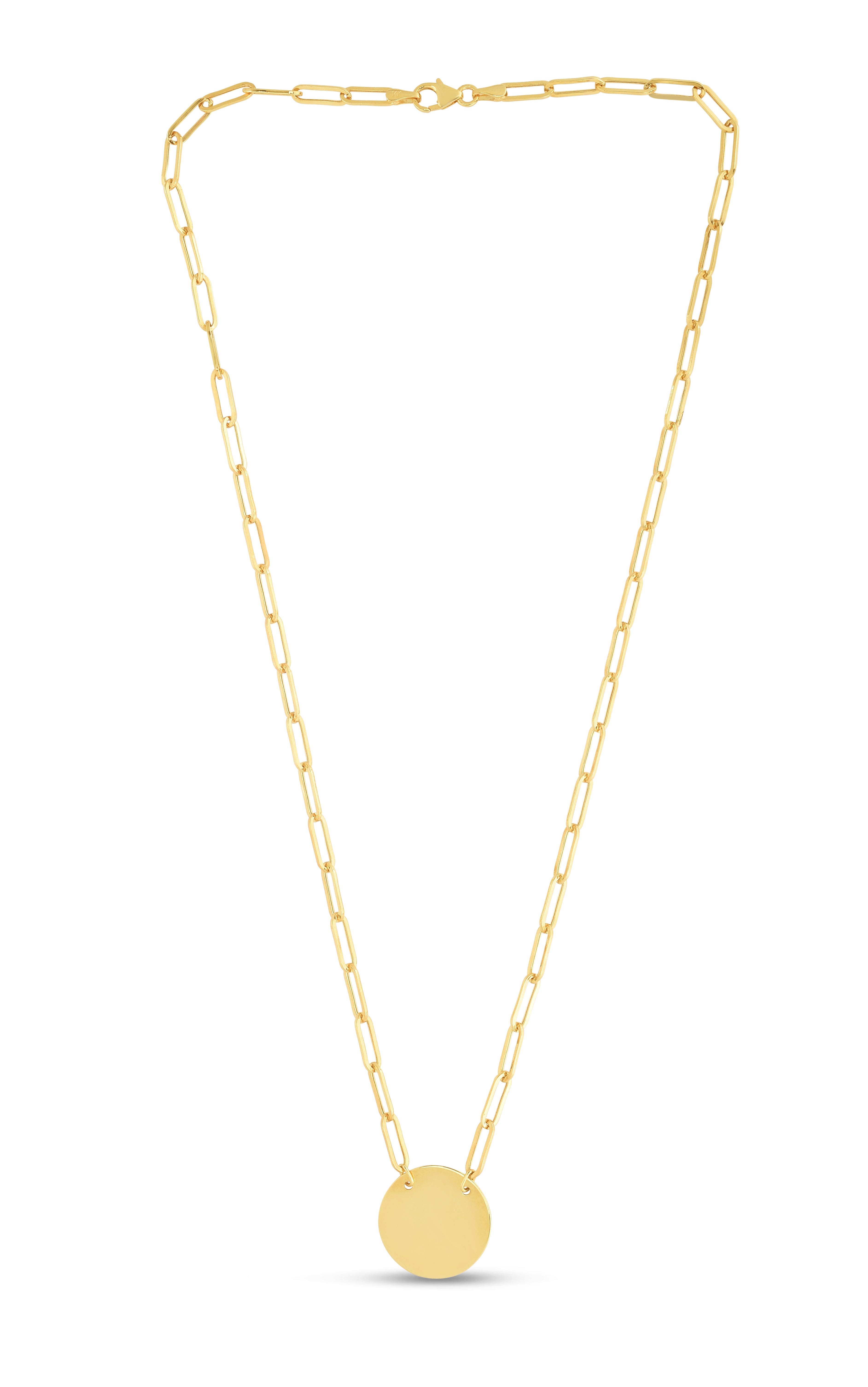 14K Yellow Gold 18" Disc Circle Necklace on Paperclip Chain