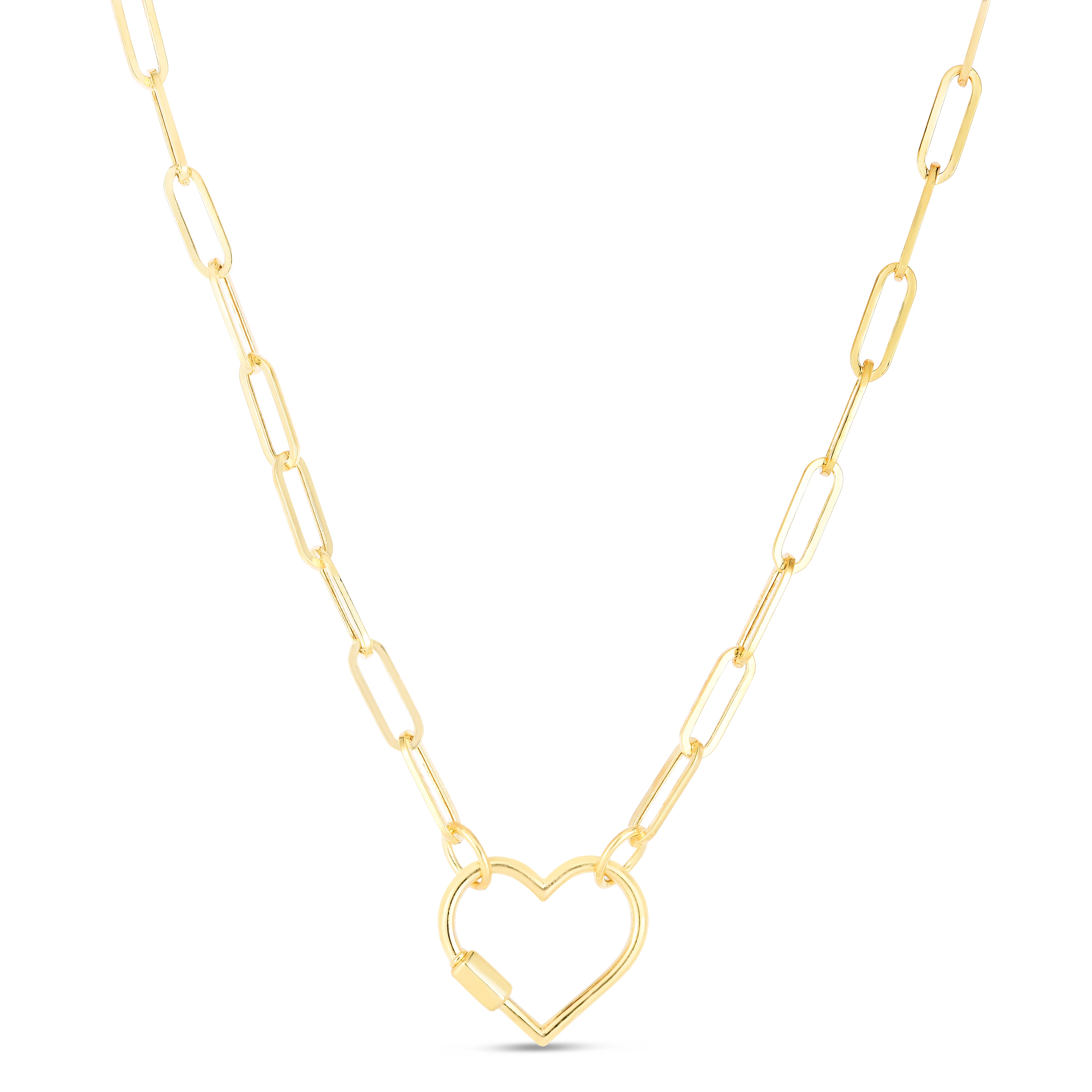 14K Yellow Gold 18" Heart Carabiner Clasp Paperclip Chain Necklace