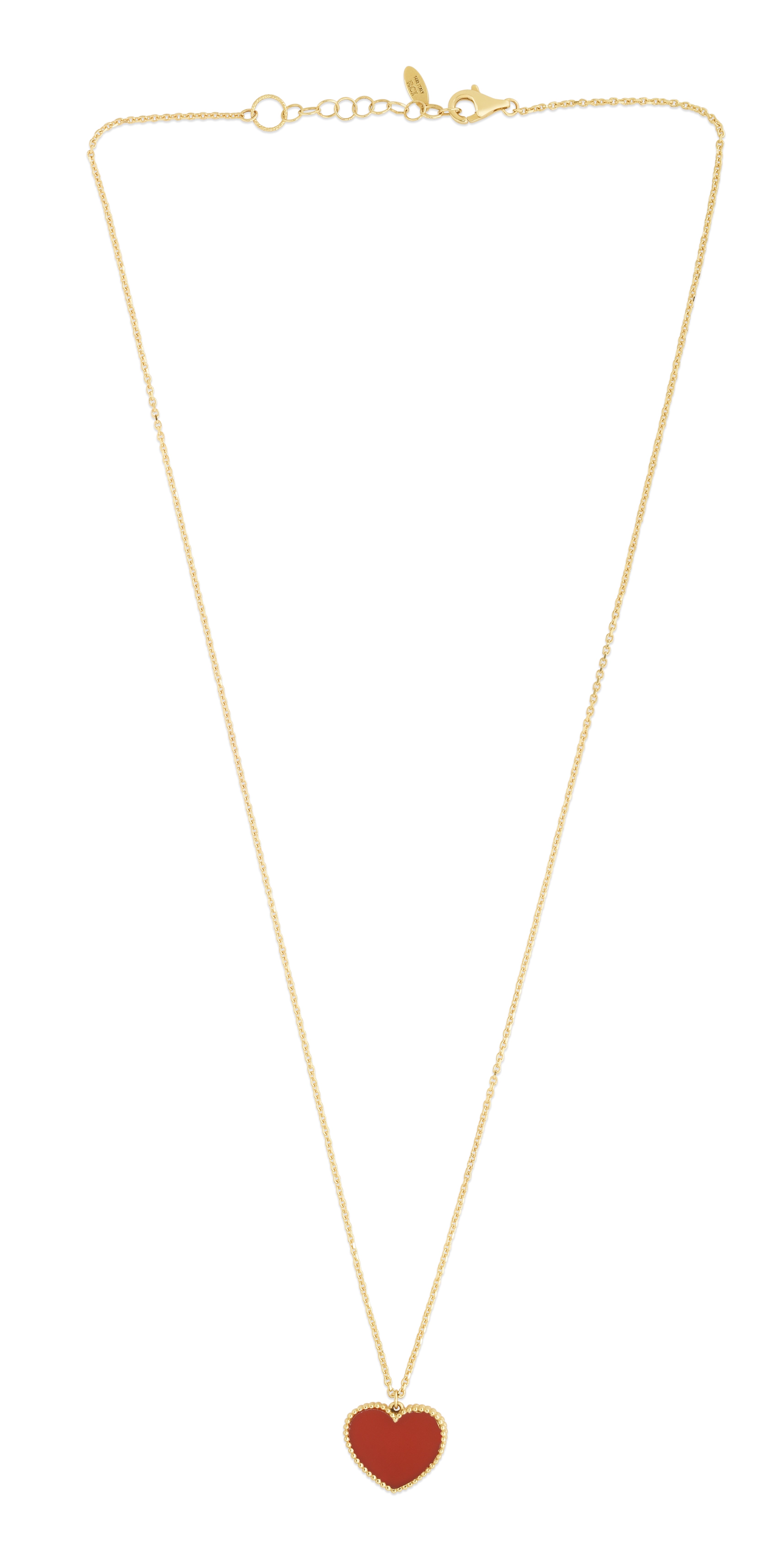 14K Yellow Gold Red Cornelia Heart 18" Necklace with Lobster Clasp