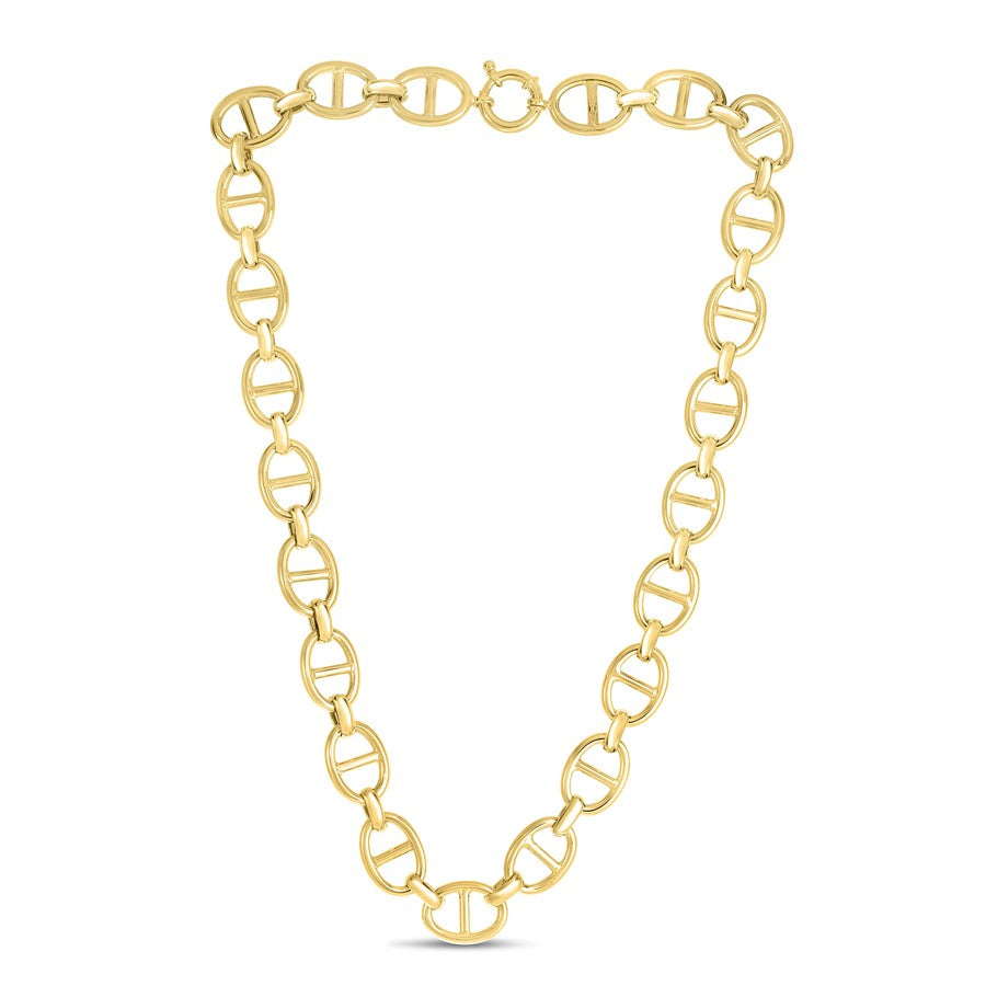 14K Yellow Gold 13.8mm Mariner Link 18.5" Necklace with Large Spring Ring Clasp