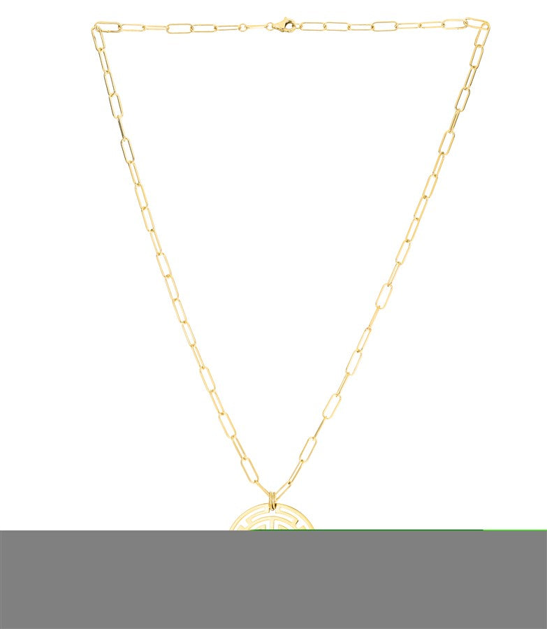 14K Yellow Gold Polished 18" Large Longevity Medallion Necklace with Lobster Clasp.