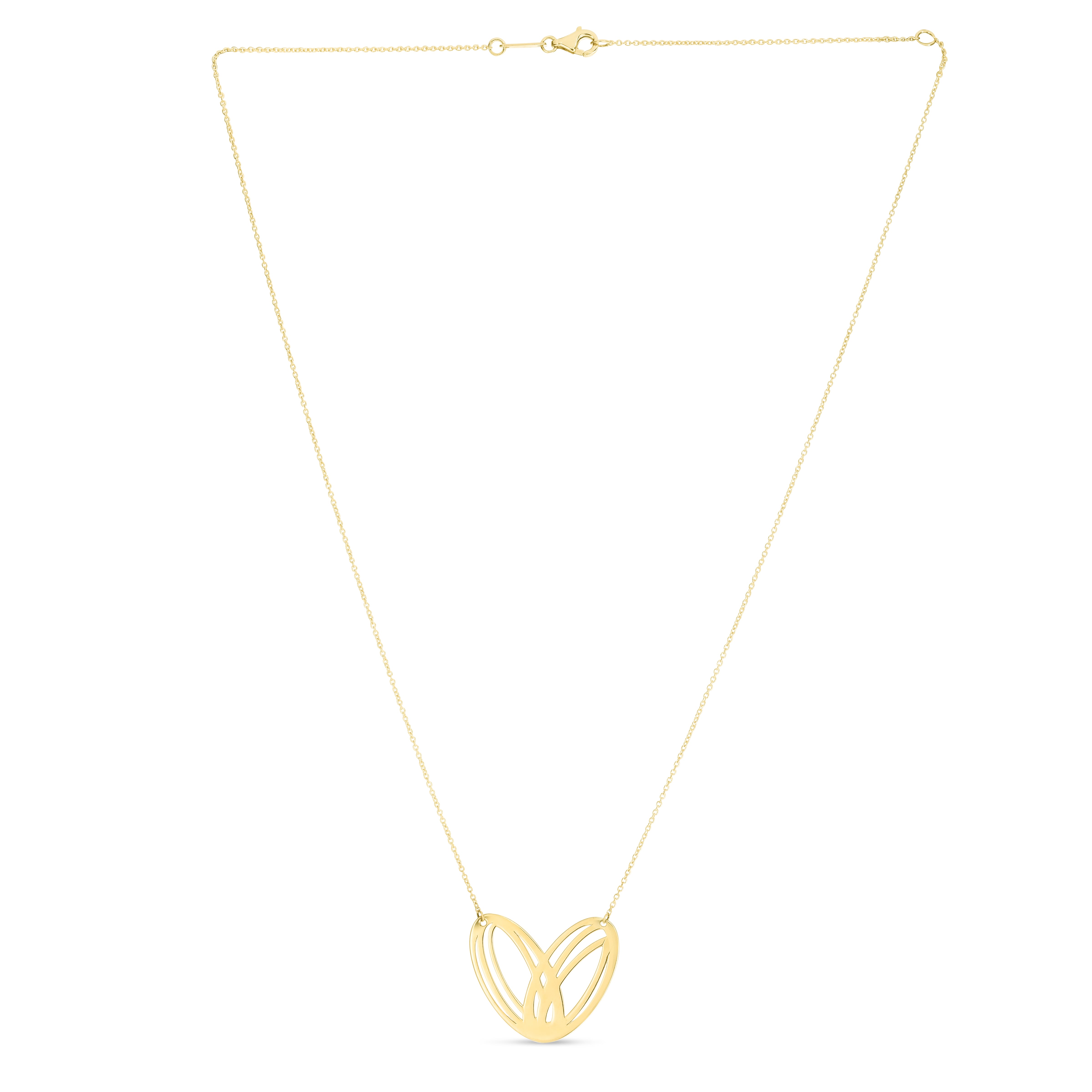 14K Yellow Gold Polished Large Loopy Heart Necklace with Lobster Clasp. Total length 18" with jump ring at 16."