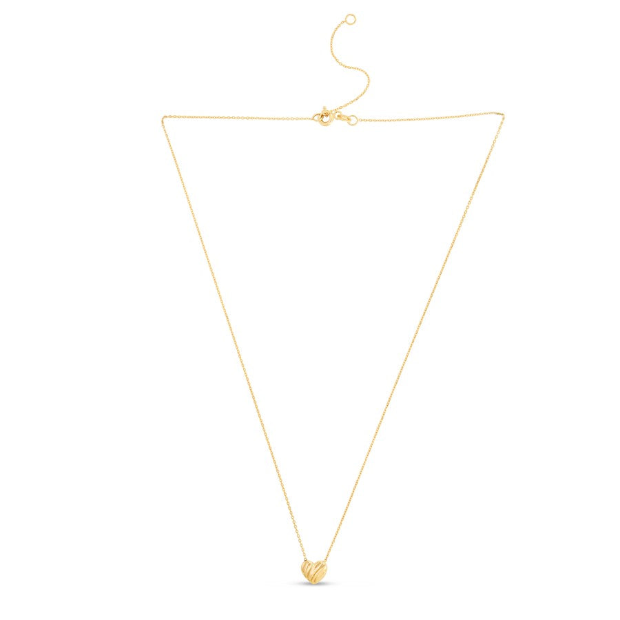 14K Yellow Gold Polished Scribbles Heart 18" Necklace with Spring Ring Clasp.