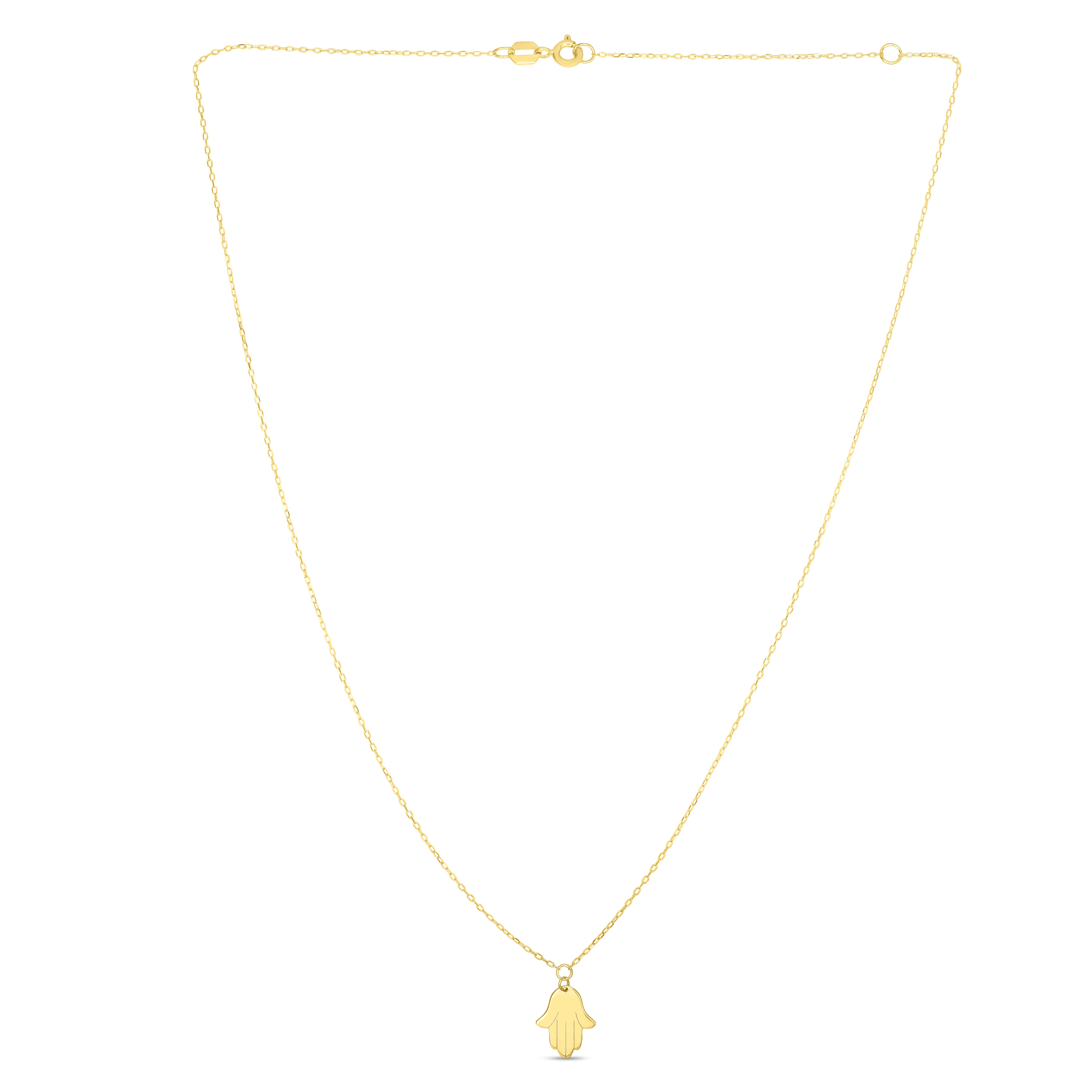 14K Yellow Gold 18" Polished Hamsa Necklace