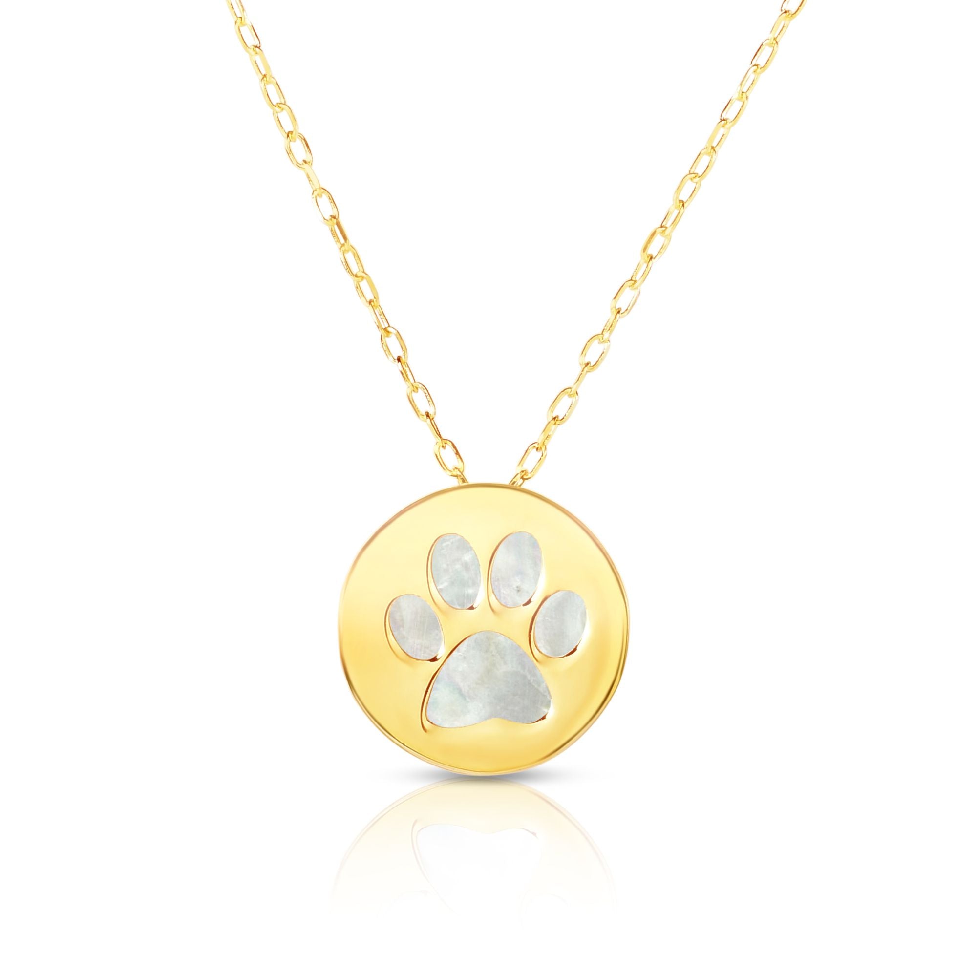 14K Yellow Gold 18" Paw Print Mother of Pearl Necklace