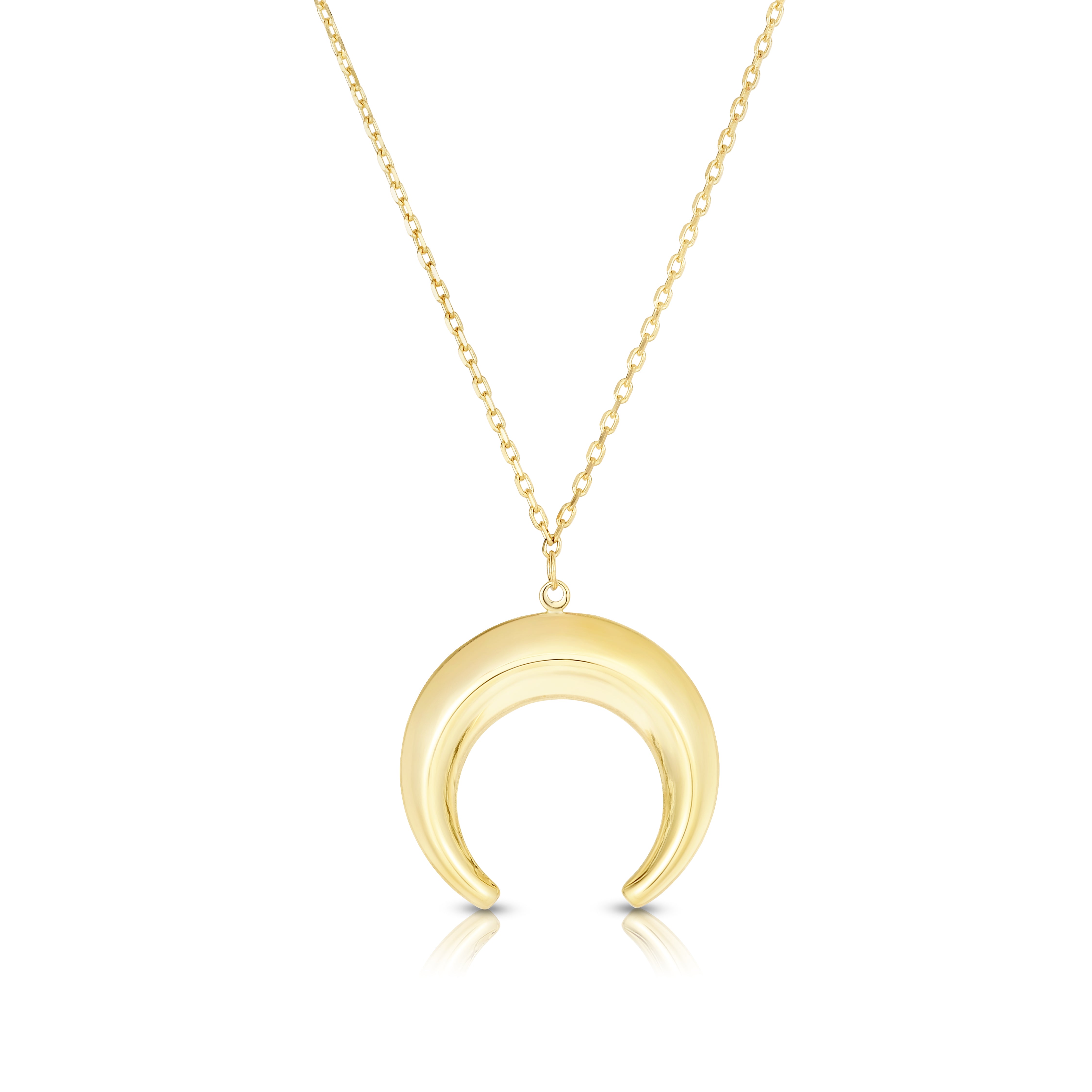 14K Gold Puffed Crescent Necklace