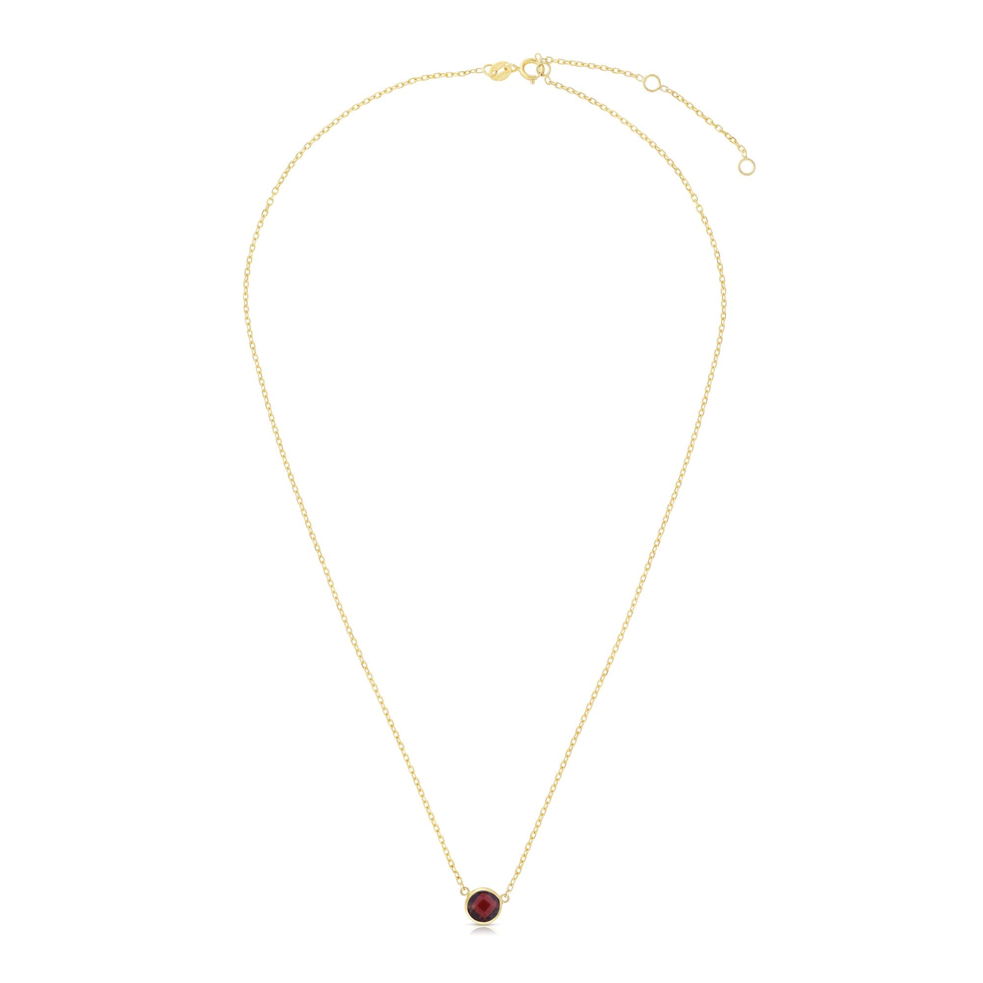 14K Yellow Gold 17" Semi-Precious Round Garnet Solitaire Necklace