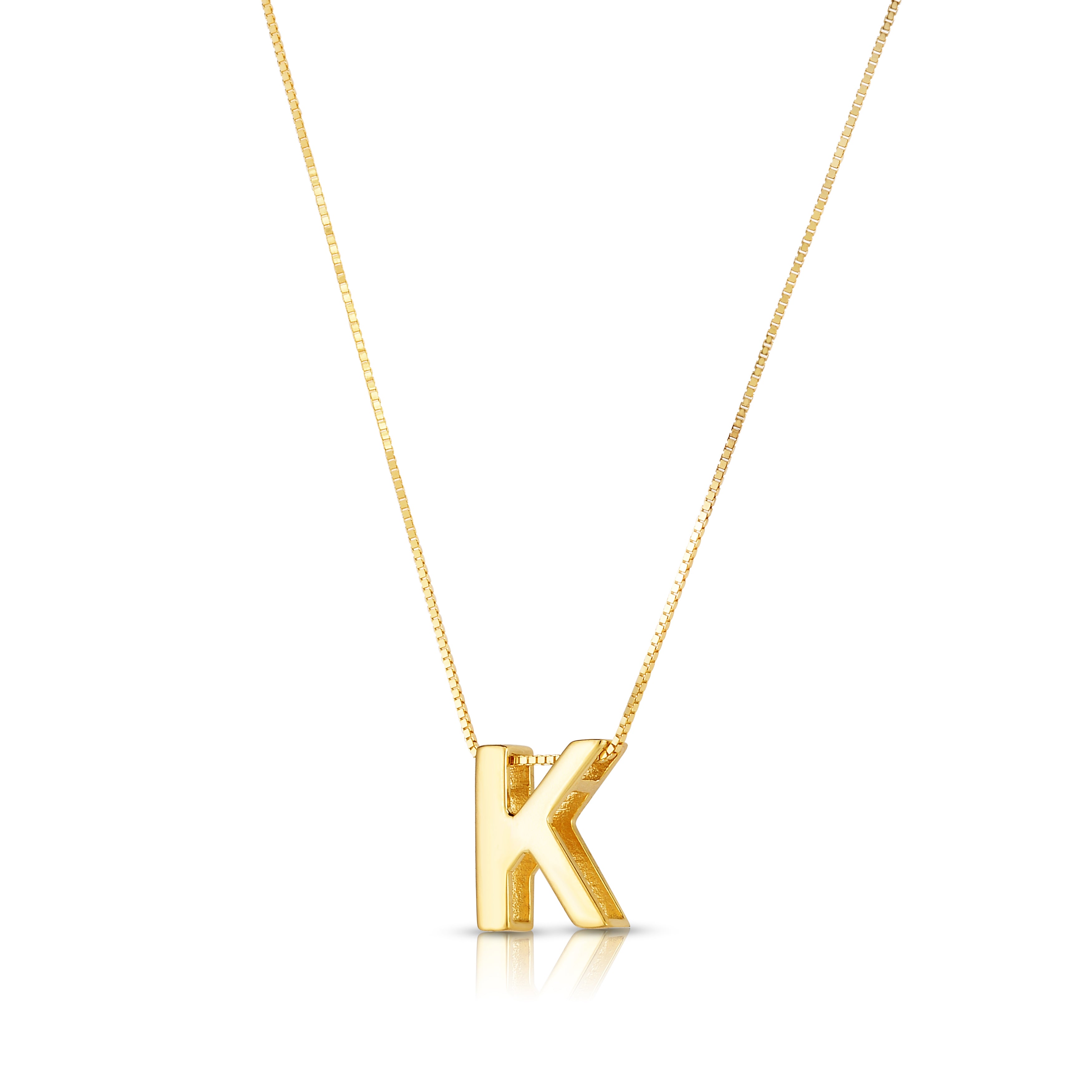 14K Yellow Gold Yours Truly Block Letter Initial K 18" Necklace