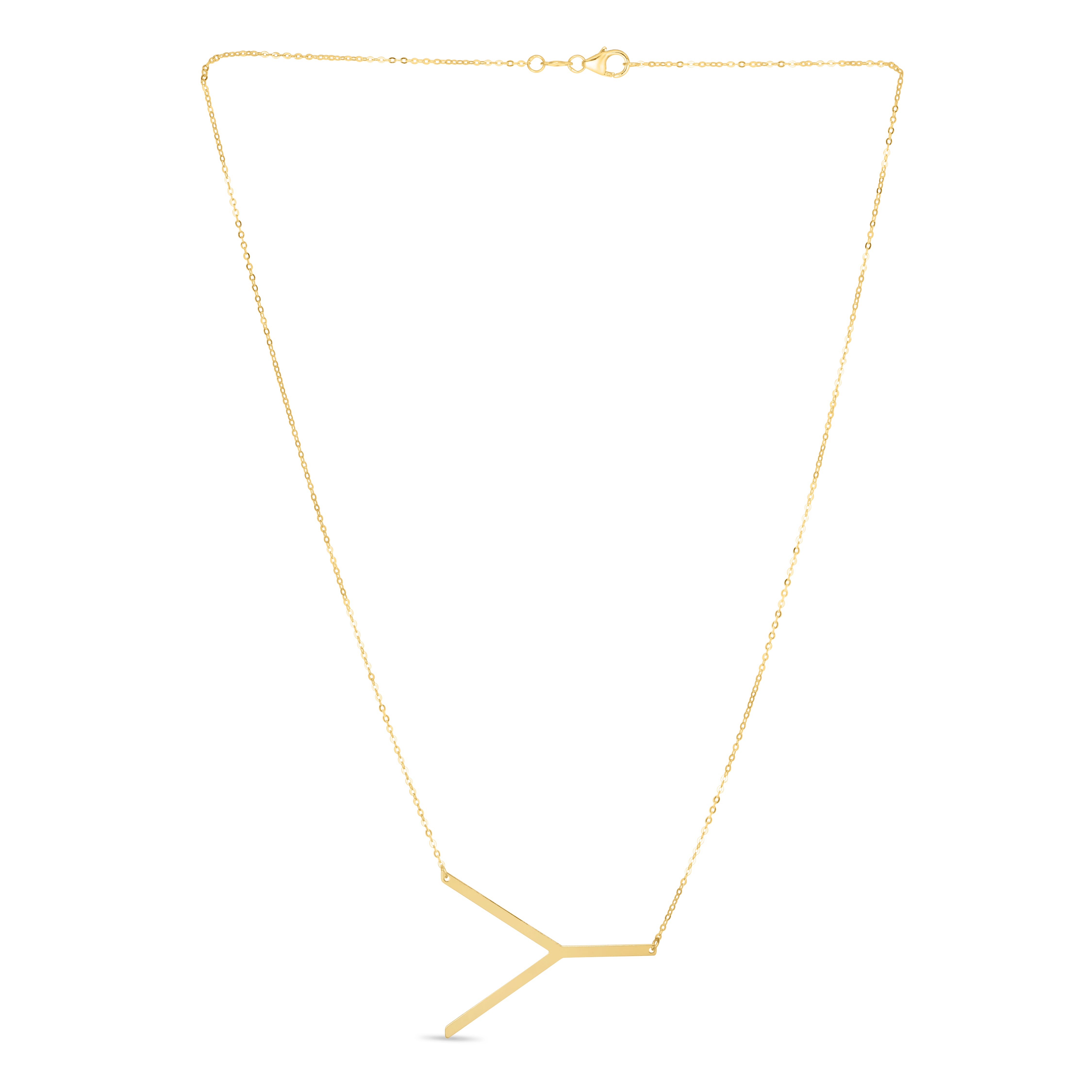 14K Gold Large Initial Y Necklace