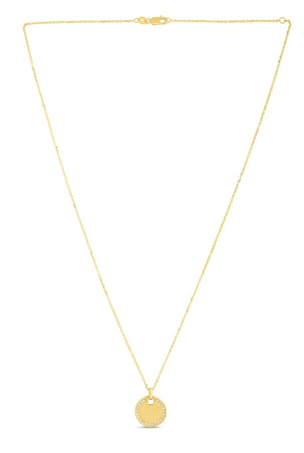 14K Yellow Gold .10ct Diamond Round Disc Tag 18" Necklace with Lobster Clasp.
