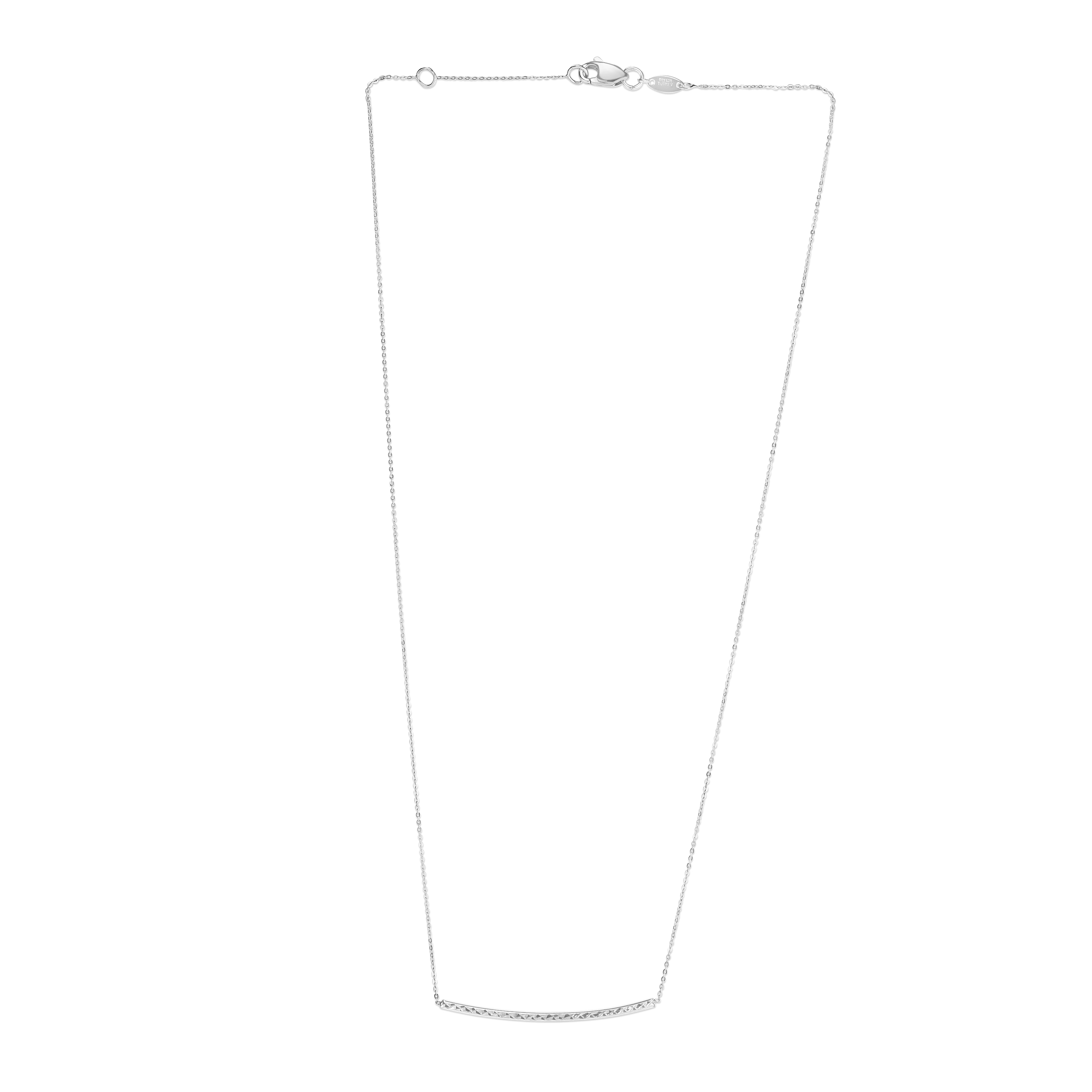 14K 17" White Gold Diamond Cut Sideways Bar Necklace with Lobster Clasp.