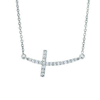 14K Gold .22ct Diamond Side Cross Necklace