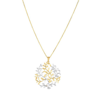 14K Two-tone Gold Tree of Life Polished Circle Necklace